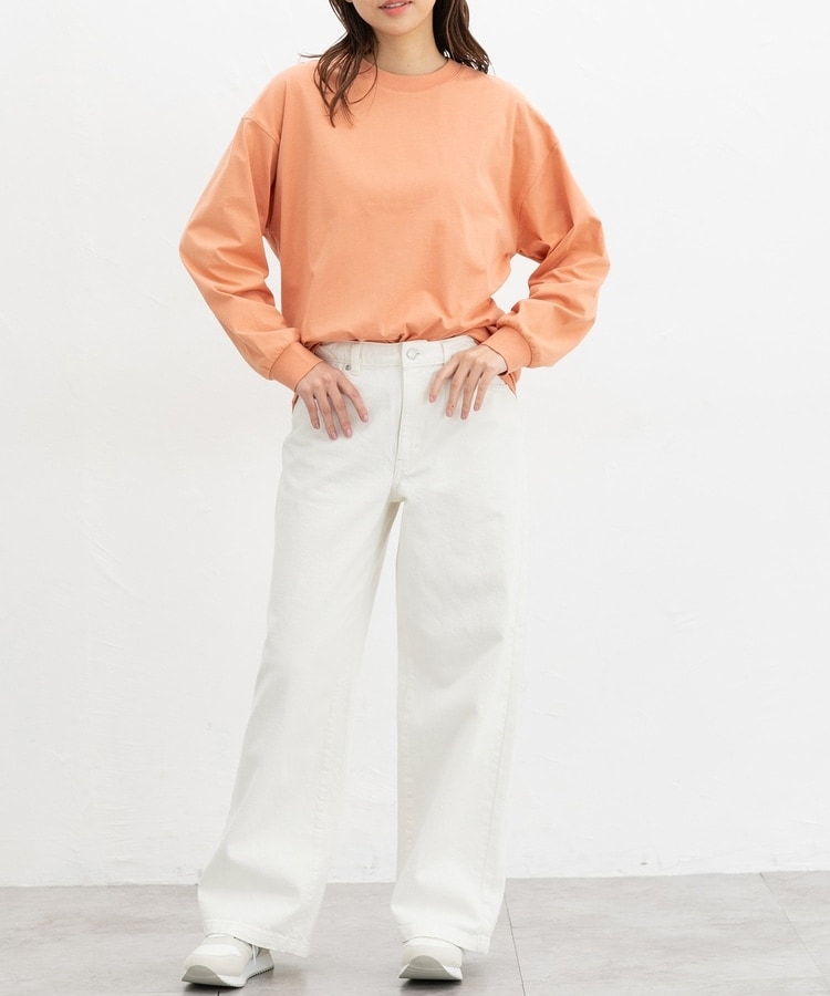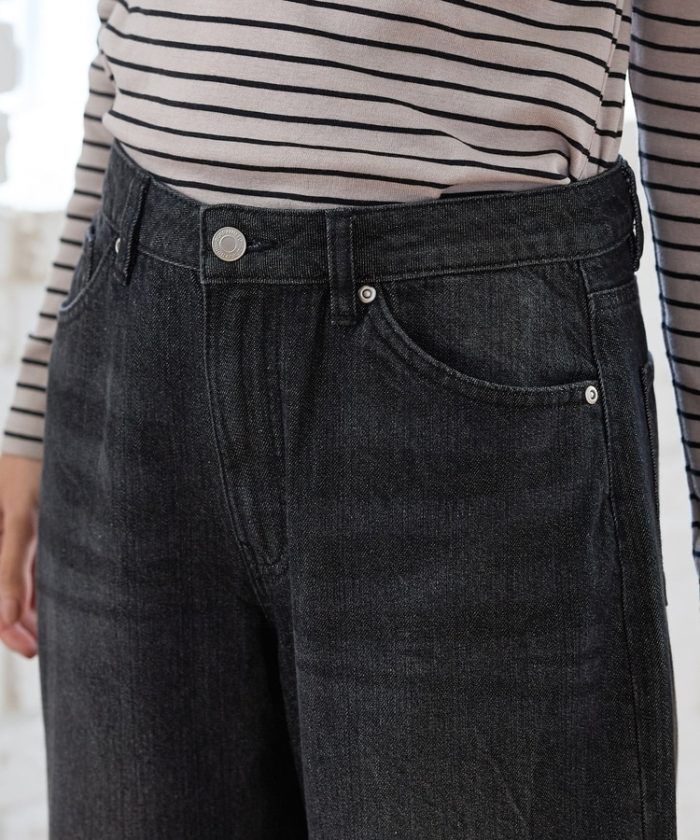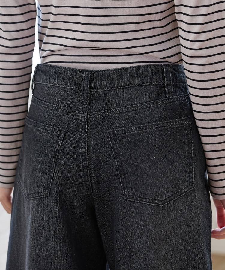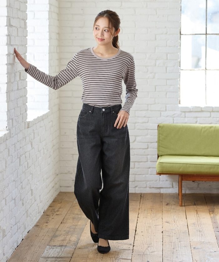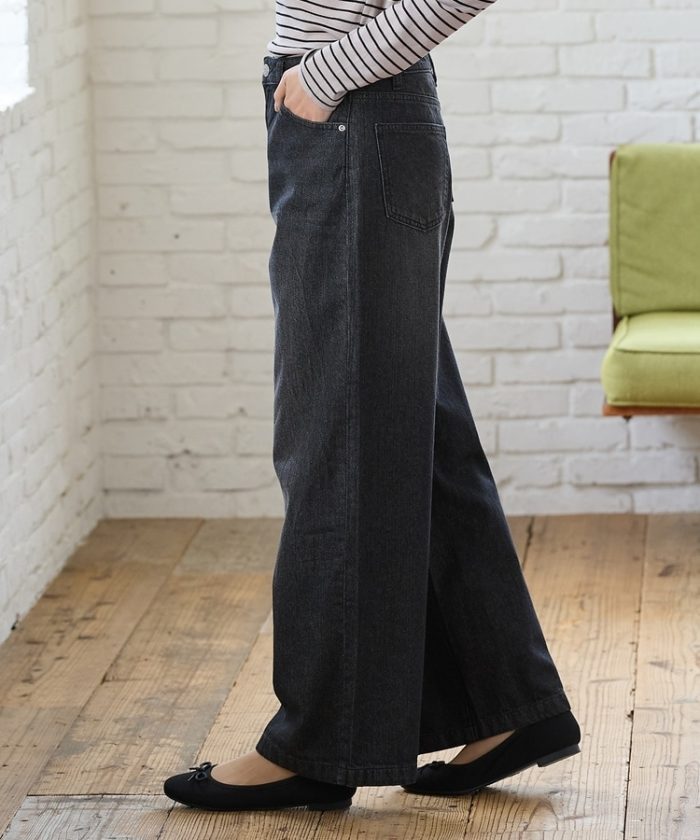 ややワイドなシルエットで、脚のラインを隠しながらスタイルアップ効果も◎