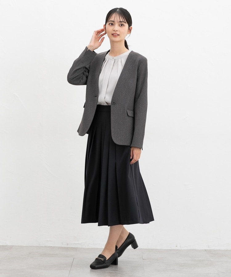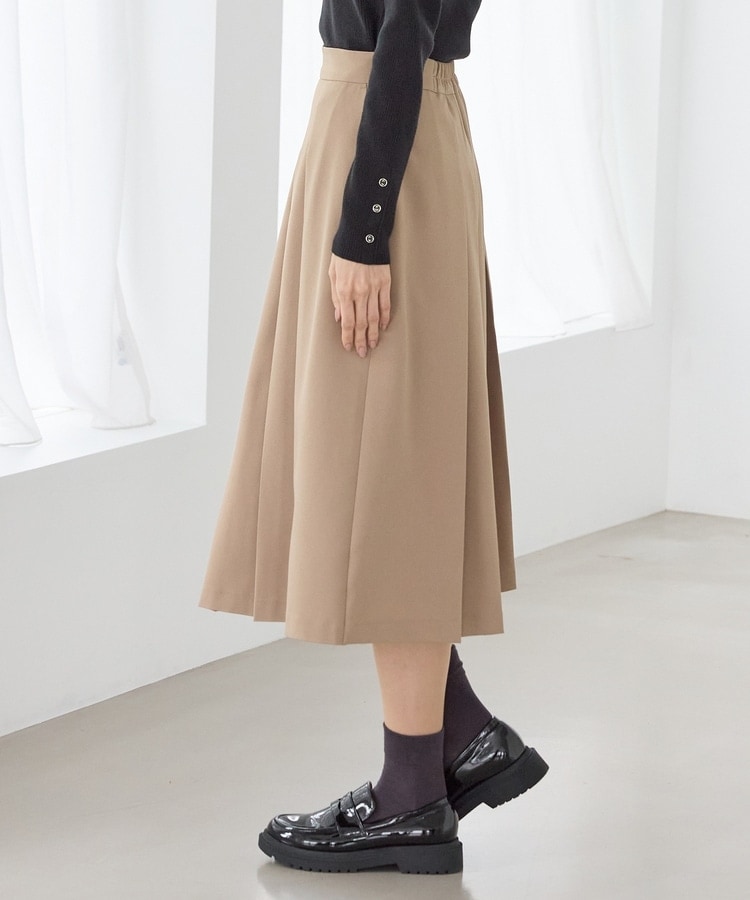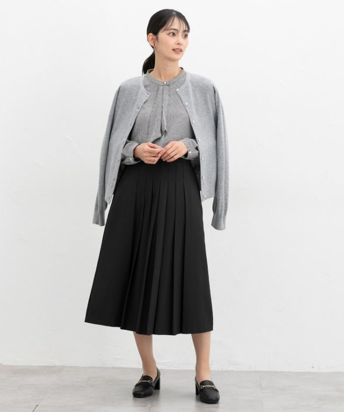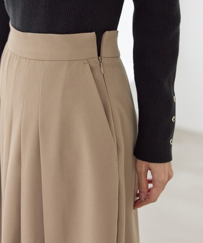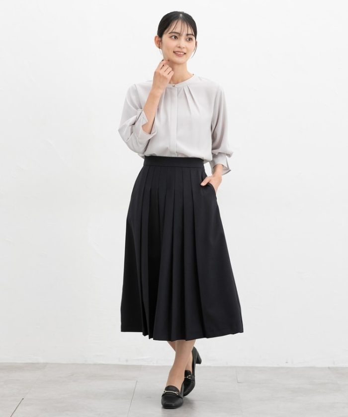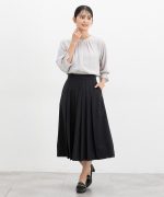 腰周りのプリーツを中縫いした、スッキリ見えが叶うデザイン。