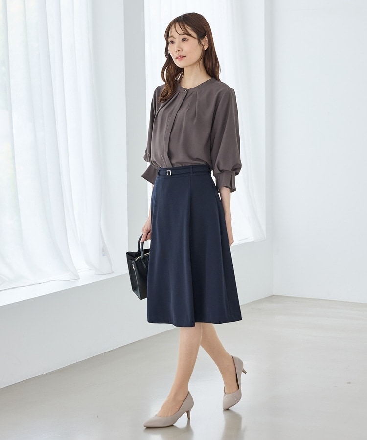 ブラウスやコンパクトトップスはもちろん、お手持ちのニットカーデなどとも相性抜群。