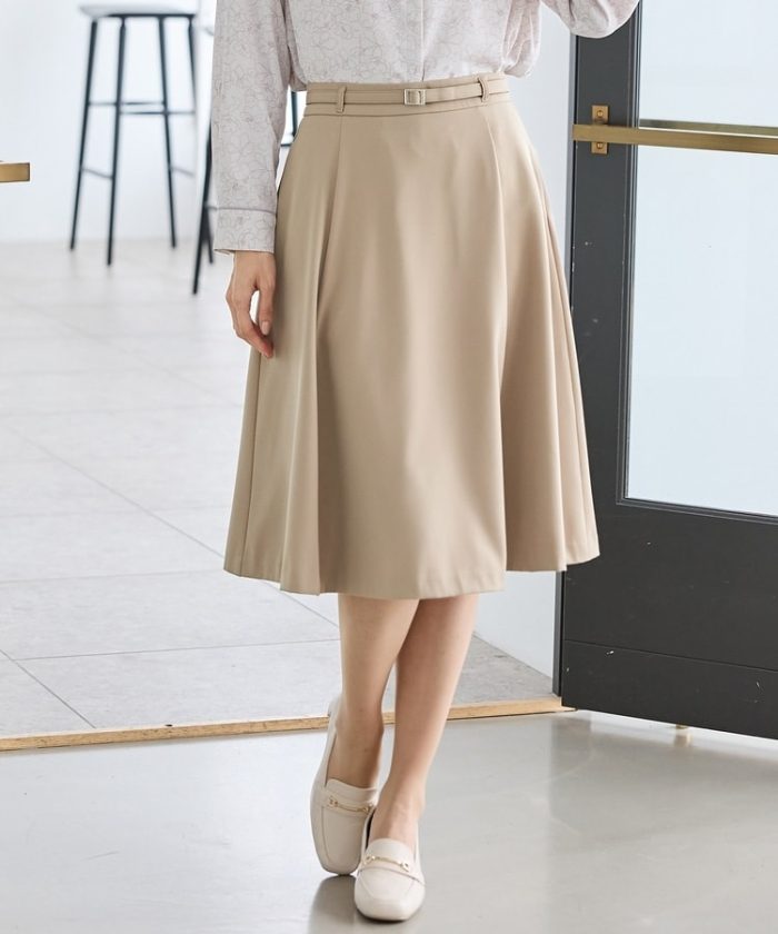 広がりすぎないフレアのきれい見えシルエット、64cm丈タイプ。