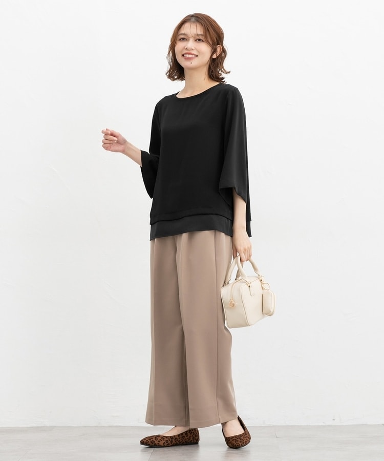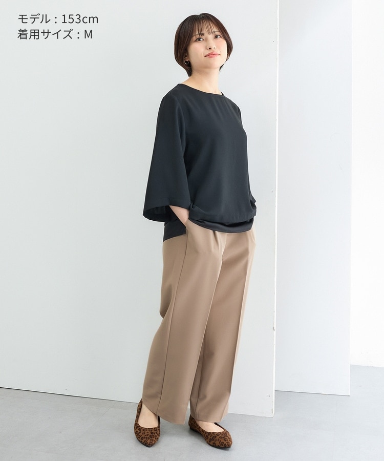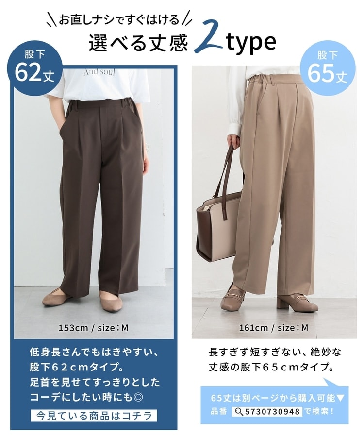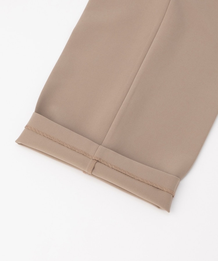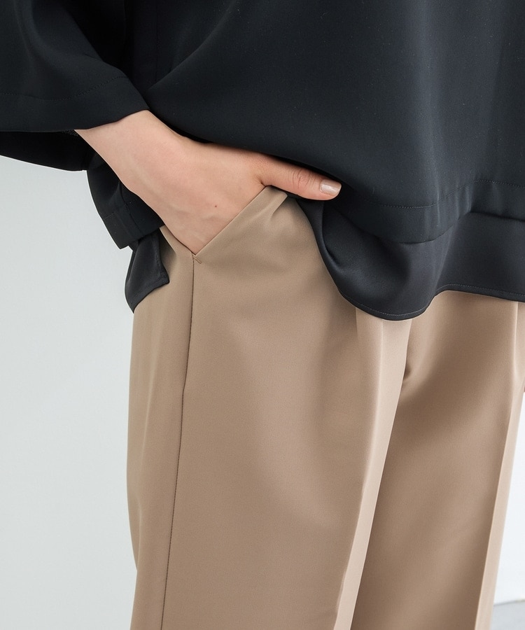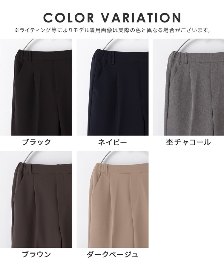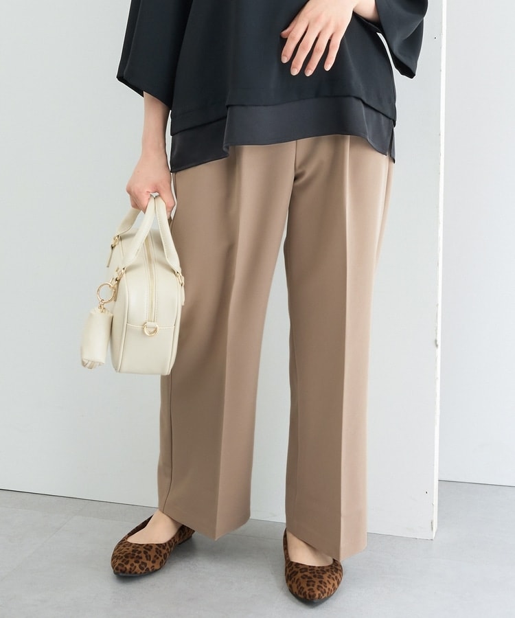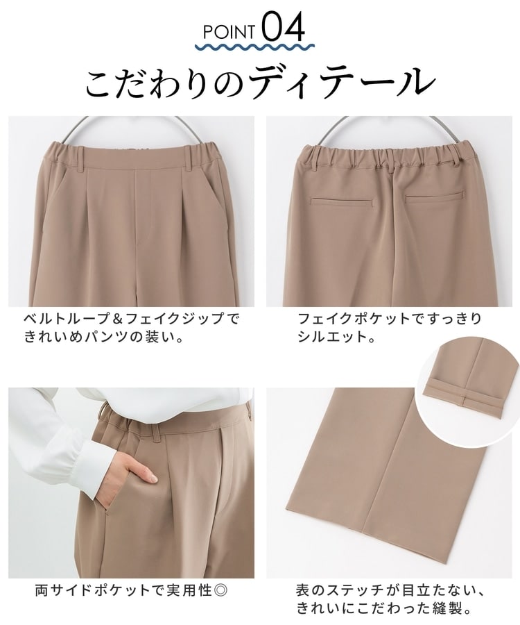 きちんと感のあるセンタープレスと腰回りのラインにこだわった美しいストレートシルエットで美脚効果も抜群。