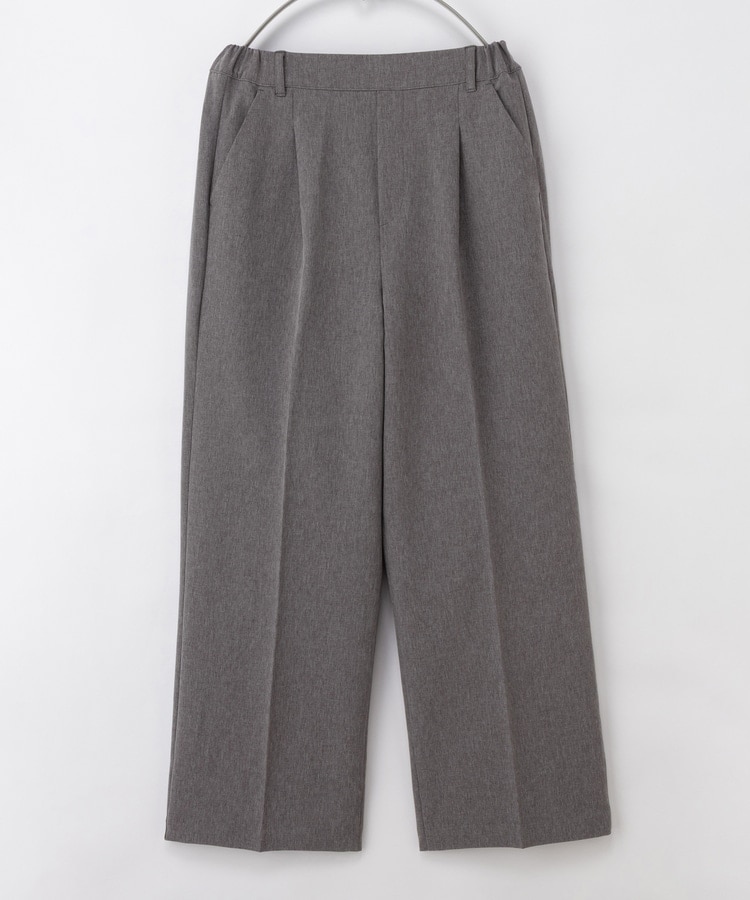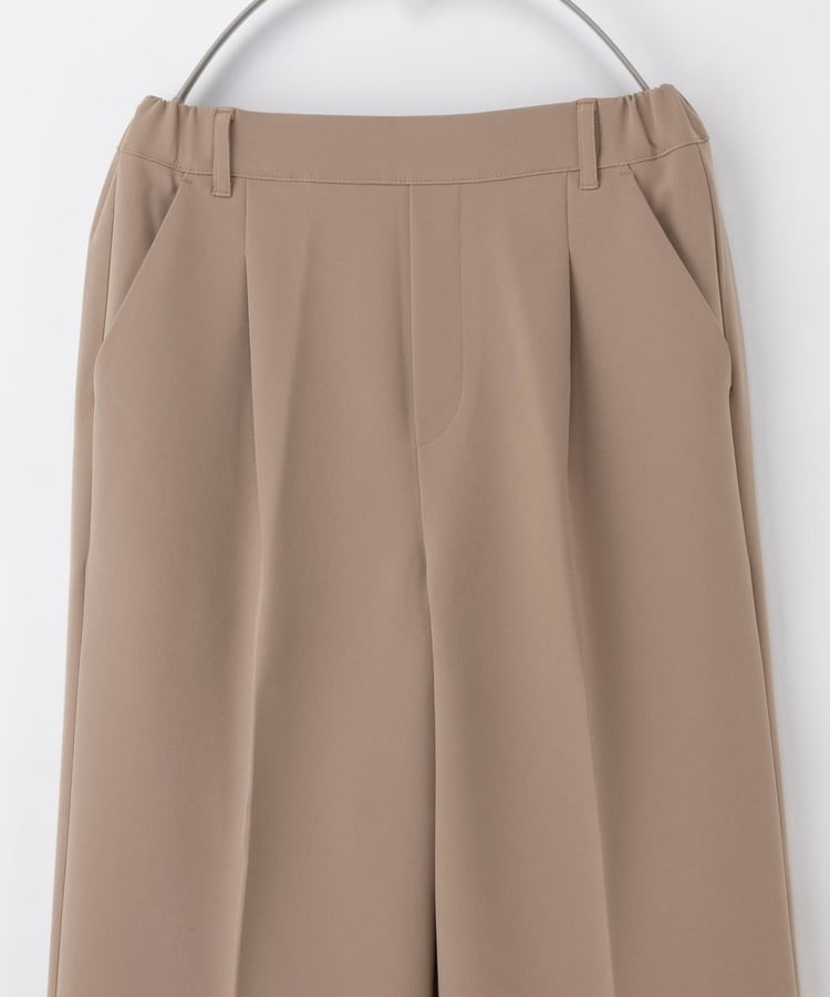 環境に優しい再生ポリエステルを使用した、『ストレッチ』の利いた落ち感素材とウエストゴムでストレスフリーなはき心地。