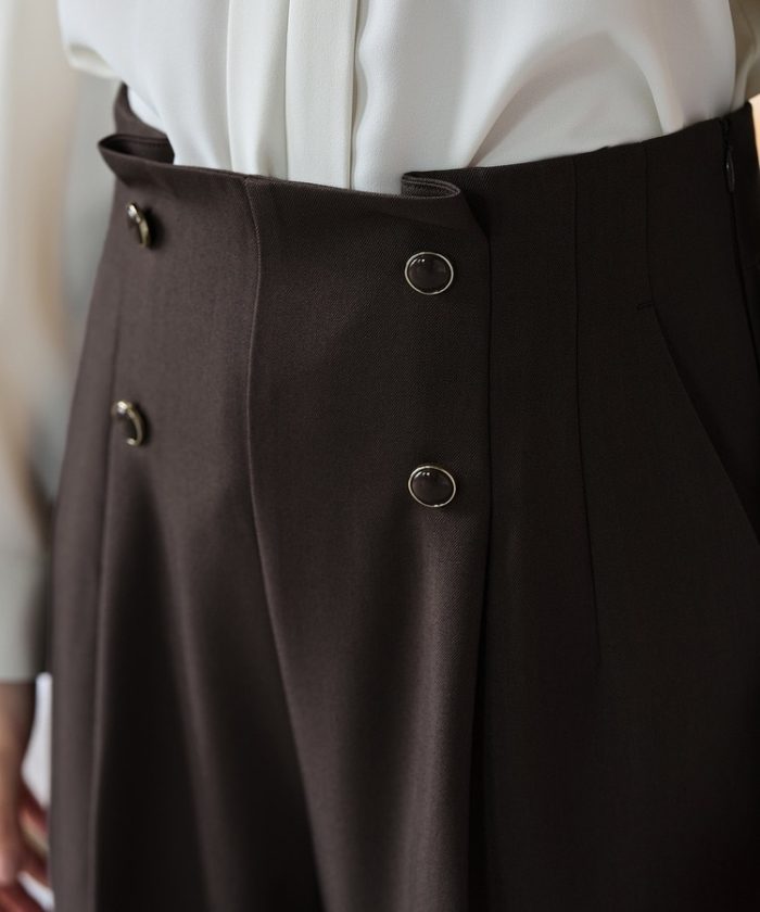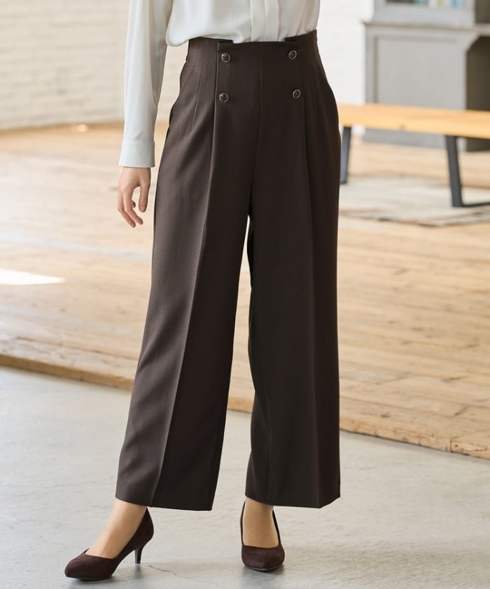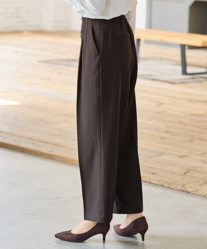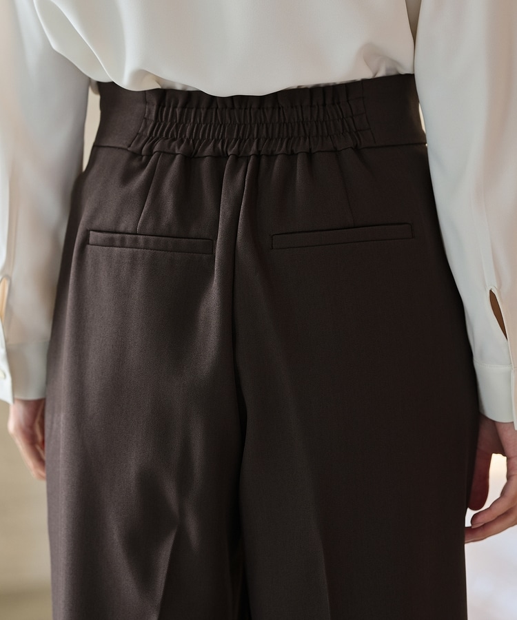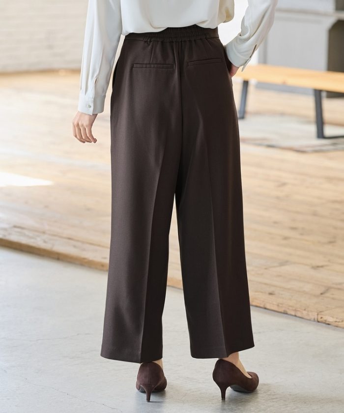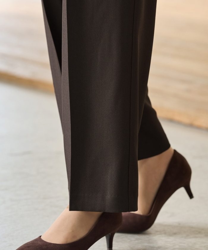 中心のみに設定した後ろゴムで、腰回りの広がりを抑えてきれい見えを叶え、センタープレスとハイウエストで美脚効果も抜群。